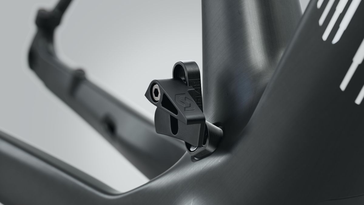 Vodilo verige je nameščeno ob okvirju. Majhen nosilec z minimalistično konstrukcijo. Ko ni v uporabi, ga lahko enostavno odstranite in pokrijete s čepom.